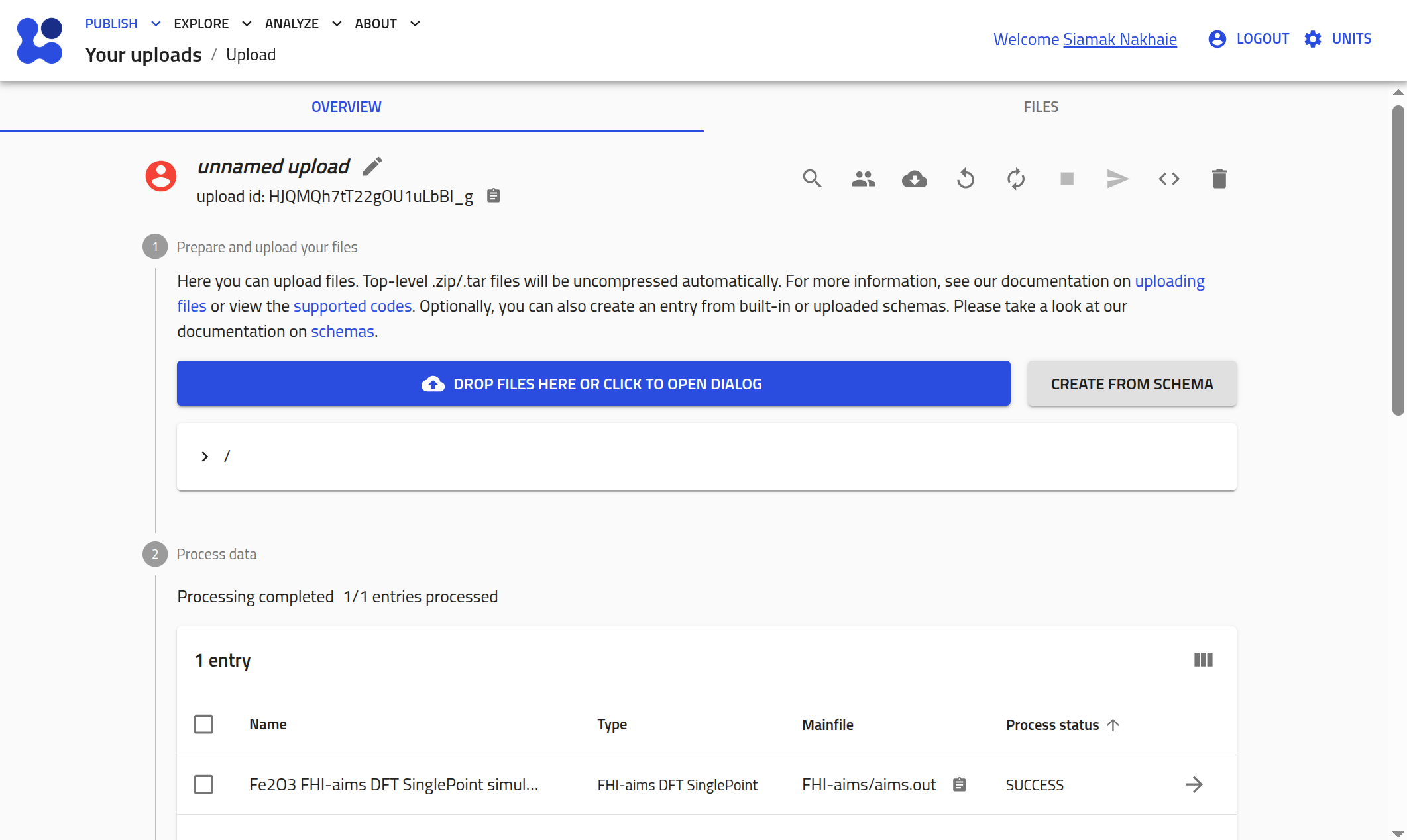 2. Upload raw research data to NOMAD and create uploads programmatically